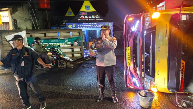 Beritacom, Tangerang Selatan — Sebuah truk bermuatan makanan ayam mengalami kecelakaan tunggal hingga terguling di Jalan Pembangunan, Kelurahan Jombang, Kecamatan Ciputat, Kota Tangerang Selatan, Rabu (4/3/2026) sekitar pukul 01.30 WIB.
